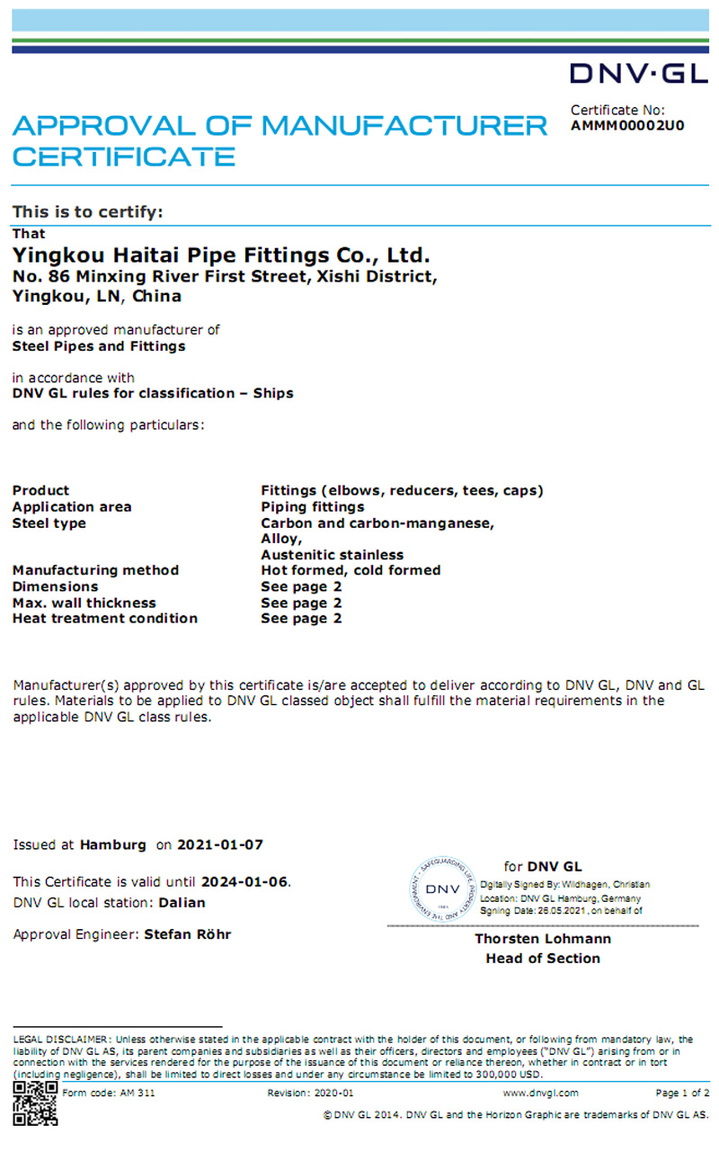 DNV(GL) 船級(jí)工廠認(rèn)可證